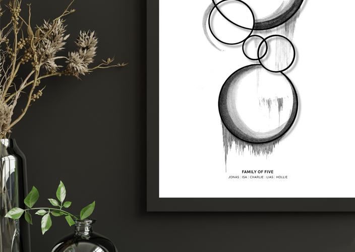 Skräddarsydd och personlig tavla med alla familjemedlemmars namn